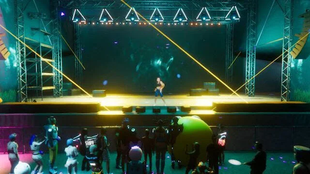 With artists given free creative reign on their sets, it was interesting to see how they chose to approach their time on the virtual stage. Artists like Charli XCX (pictured above) took advantage of the event’s VR capabilities. By skipping the bells and whistles of a mock stage and opting to use a green screen, Charli was projected onto the event’s famous Amphitheatre stage. Others like Amyl and The Sniffers, Vera Blue and The Killers took to more traditional stages, projected to various platforms across the XR Parklands. Performances like these were reminiscent of real-life sets, and brought a festival vibe straight to our screens.